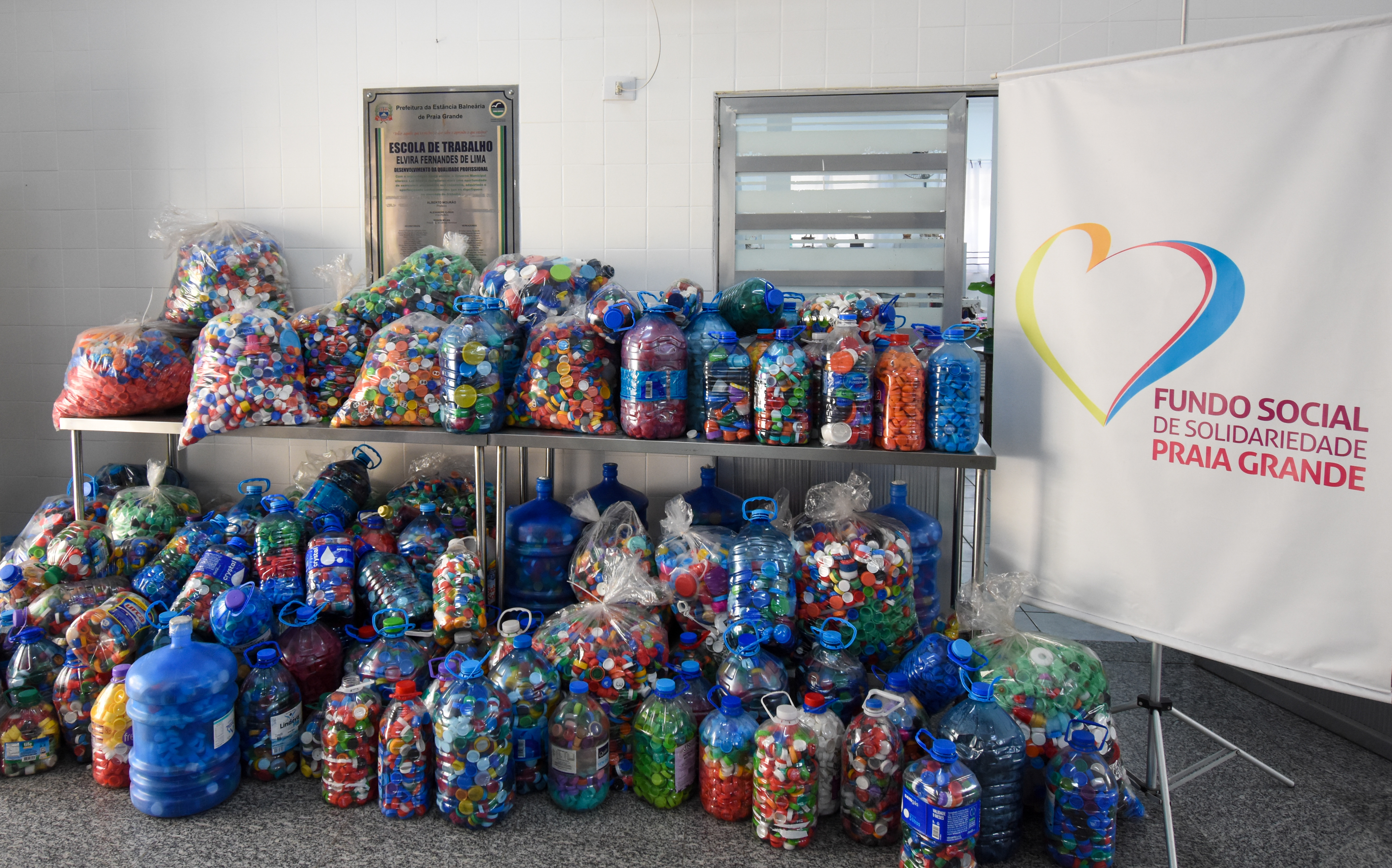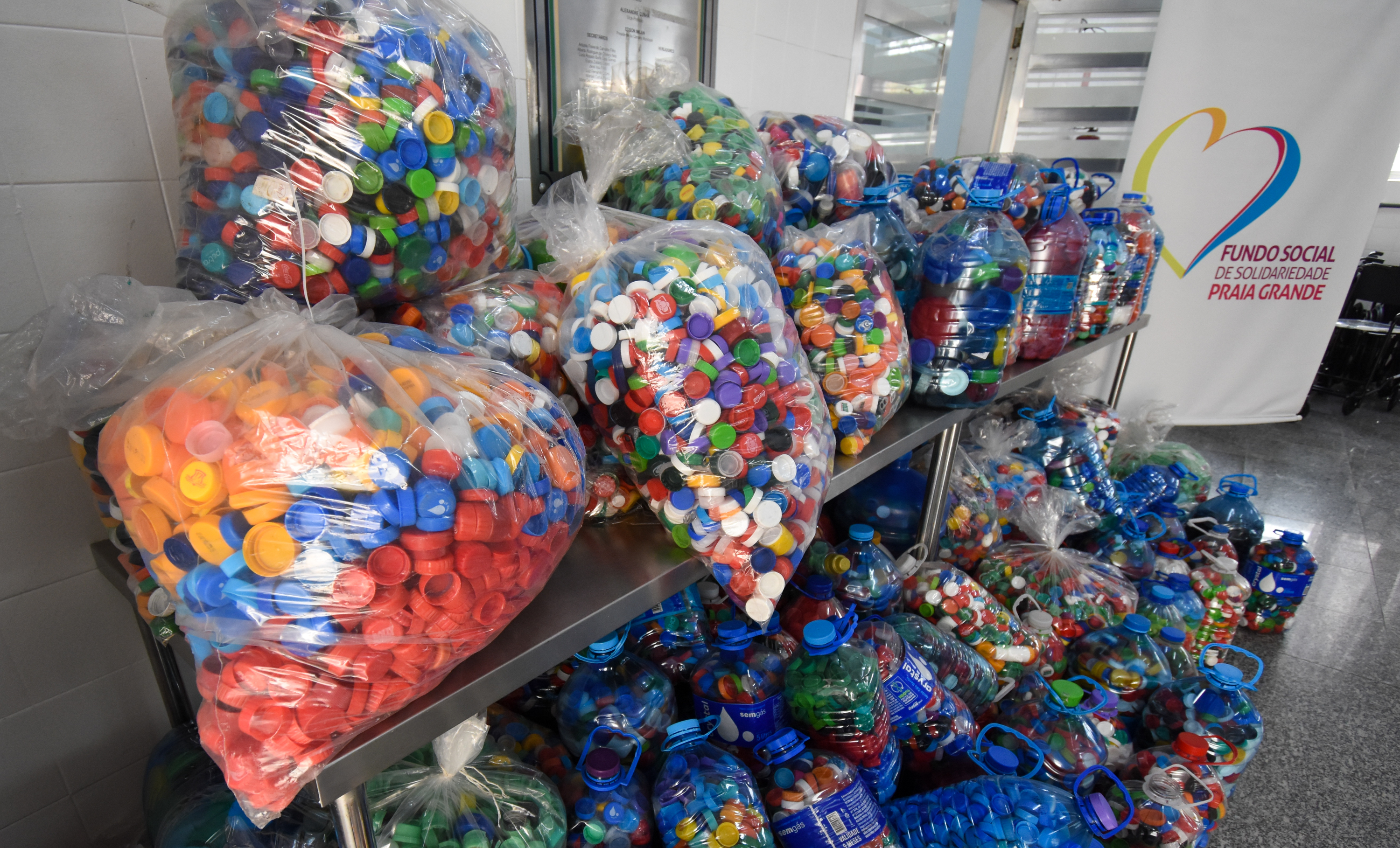 Grupo de moradores doa milhares de tampinhas para o Fundo Social