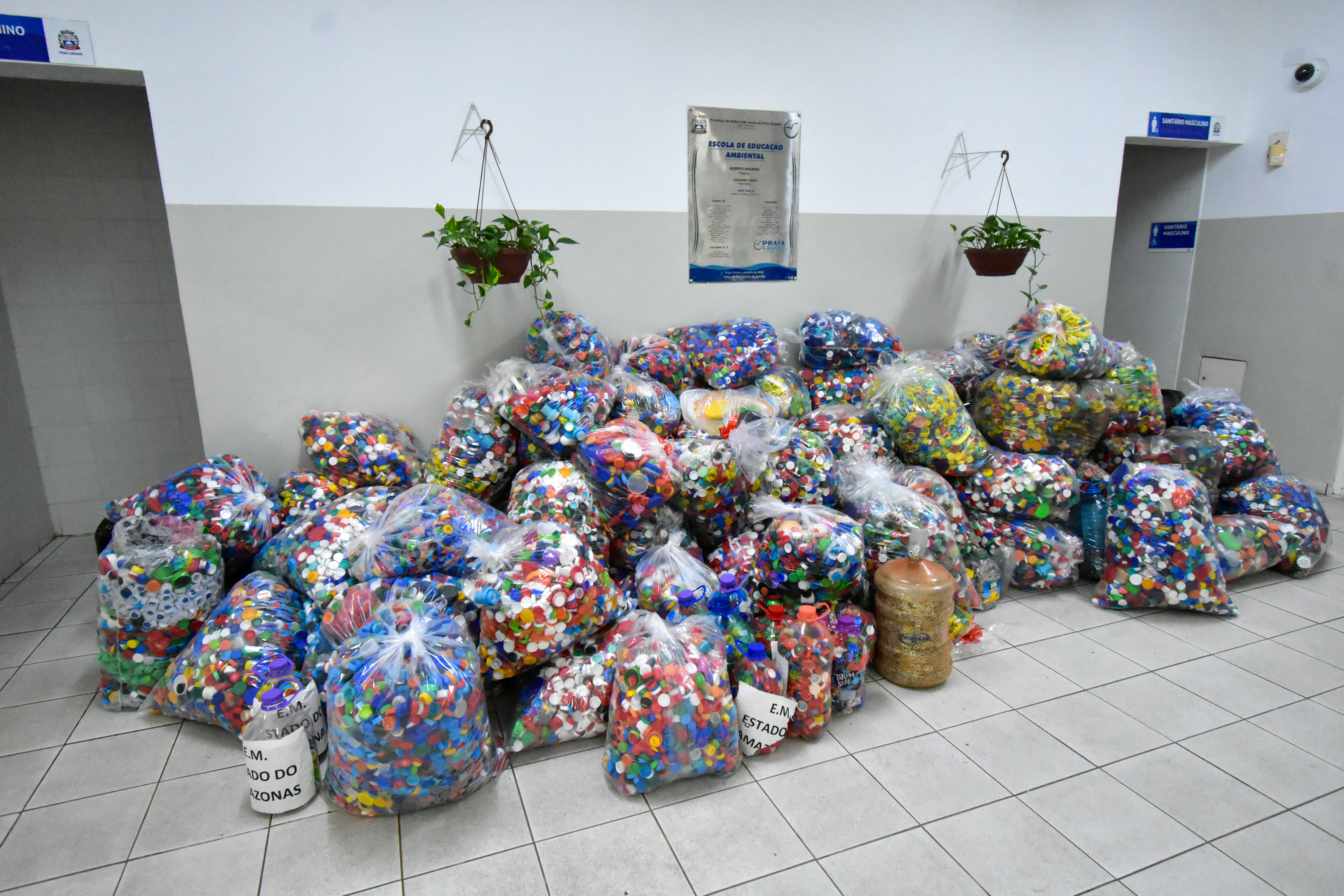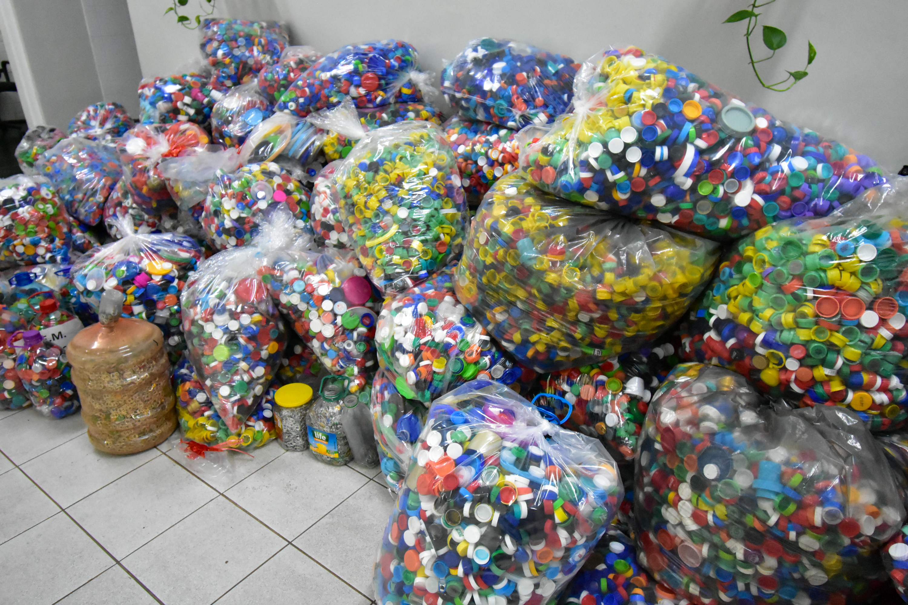 Secretaria de Educação doa 700 quilos de tampinhas para o Fundo Social