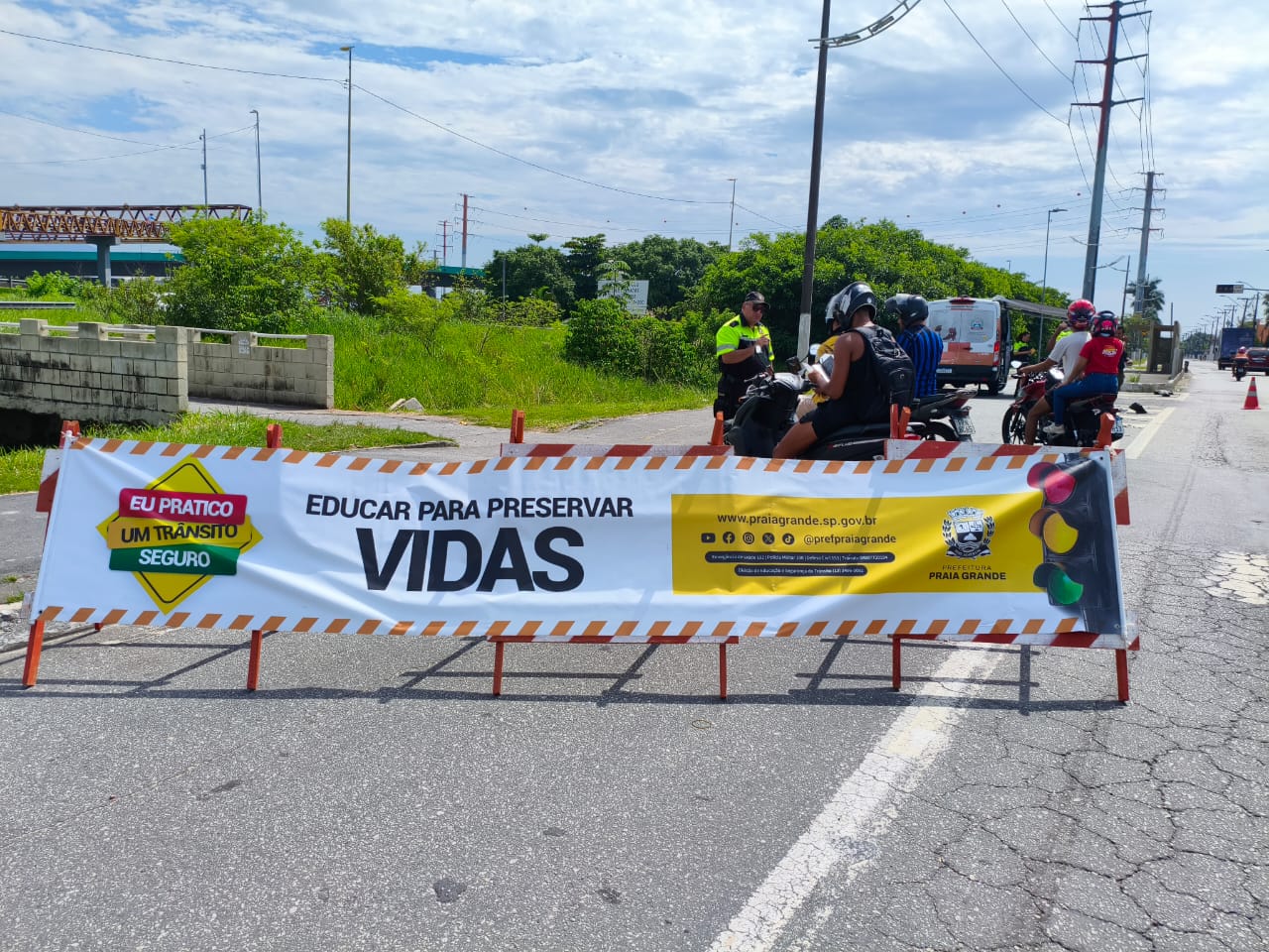 As blitzes educativas integraram o programa “Eu Pratico um Trânsito Seguro”, reforçando a importância da conscientização para redução de acidentes e preservação da vida, especialmente em um dos períodos de maior fluxo de veículos na Cidade. Além dos motociclistas, foram abordados também motoristas, ciclistas e pedestres. Foram distribuídos também diversos materiais educativos, como folders informativos, demonstração e uso do etilômetro (teste de alcoolemia), adesivos com mensagens de conscientização, viseiras educativas, ventarolas e chaveiros com frases de alerta.