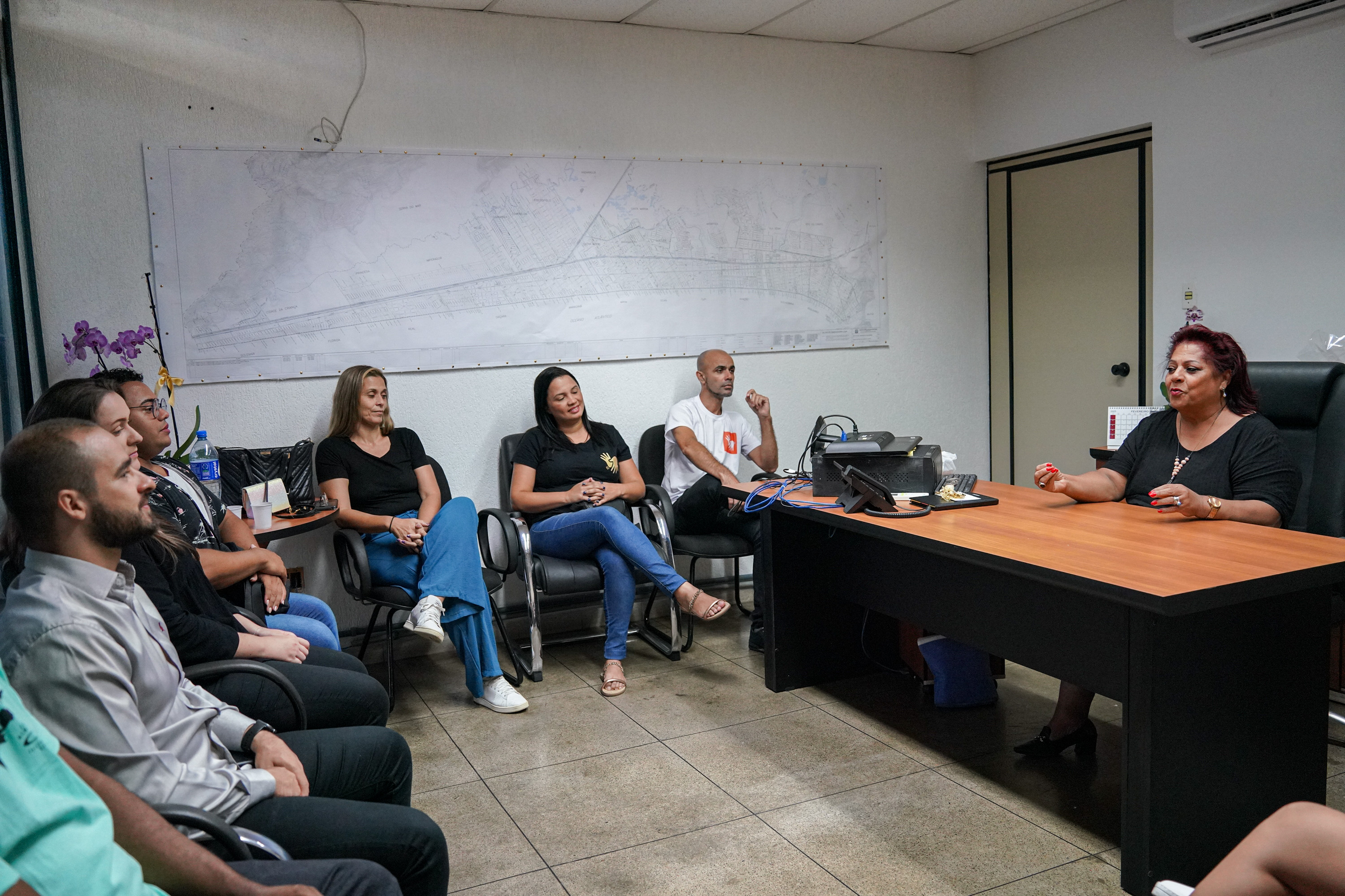 Um grupo de intérpretes de Libras, a Linguagem Brasileira de Sinais, visitou a Secretaria da Diversidade e Inclusão de Praia Grande (Sedi) nesta semana. Os profissionais foram agradecer ao apoio da secretária Vera Benício, uma das grandes incentivadoras do trabalho deles nos últimos tempos. Os profissionais atuaram na tradução simultânea nos shows do Estação Verão e nas arenas da orla da praia.