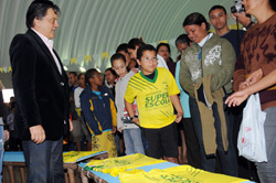 Os estudantes estavam acompanhados pelo responsável e muitos deles vestiram a camiseta com auxílio do próprio prefeito ou dos secretários municipais. “Unimos a necessidade de renovar o uniforme à idéia de fazer uma camiseta alusiva à Copa do Mundo, pois as crianças gostariam de ter uma camiseta verde e amarela pra torcer pelo Brasil, mas muitas não têm condições de comprar”, afirmou o prefeito, comentando também que no próximo ano os mais de 40 mil alunos da rede municipal receberão uniforme escolar.