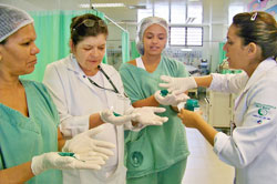 Como coordenadora do projeto, a enfermeira Luize Fábrega Juskevicius, do SCIH, sensibilizou os profissionais da UTI utilizando tinta verde para evidenciar se a higienização está sendo perfeita. “Foi uma capacitação prática para que eles vissem se e onde estão falhando”, observa.